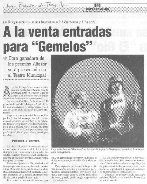 Exitoso montaje "Pateados" lega al Municipal [artículo]