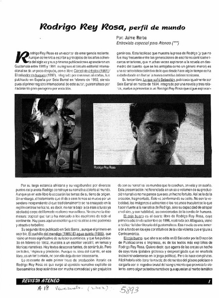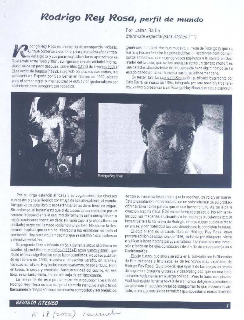 Rodrigo Rey Rosa, perfil de mundo [entrevista] [artículo] : Jaime Barba.