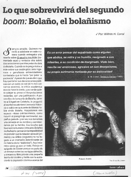 Lo que sobrevivirá del segundo boom: Bola, el bolañismo [artículo] Wilfredo H. Corral.