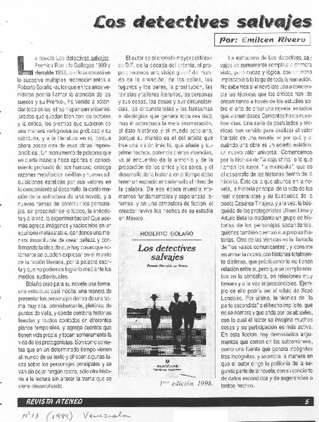 Los detectives salvajes [artículo] Emilcen Rivero.
