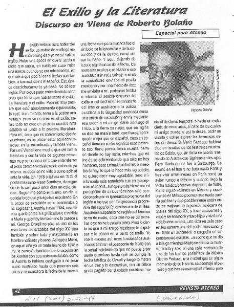 Bolaño, Roberto - Discursos - Autores chilenos - Exilio (Castigo) en literatura