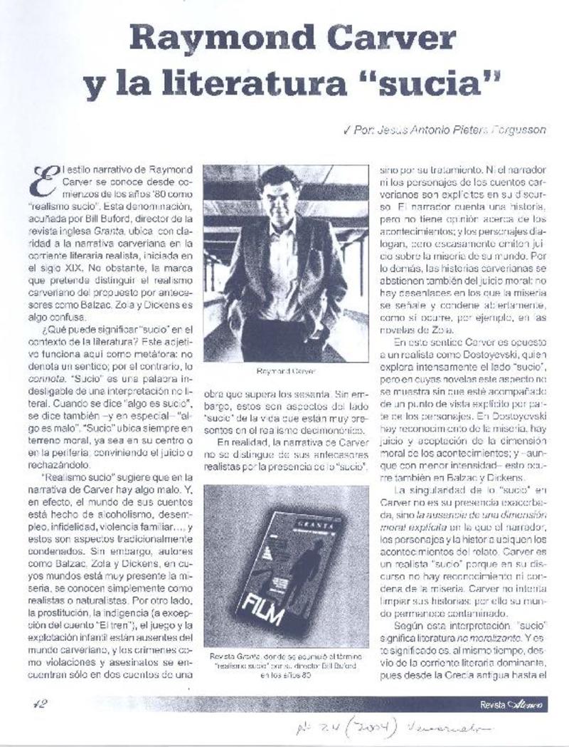 Raymond Carver y la literatura "sucia" [artículo] Jesús Antonio Pieters Fergusson.