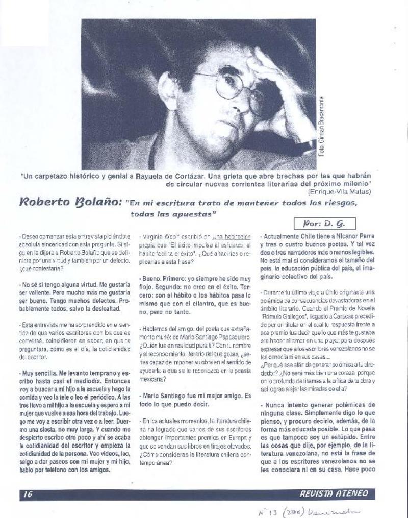 Roberto Bolaño [artículo] Daniuska González.