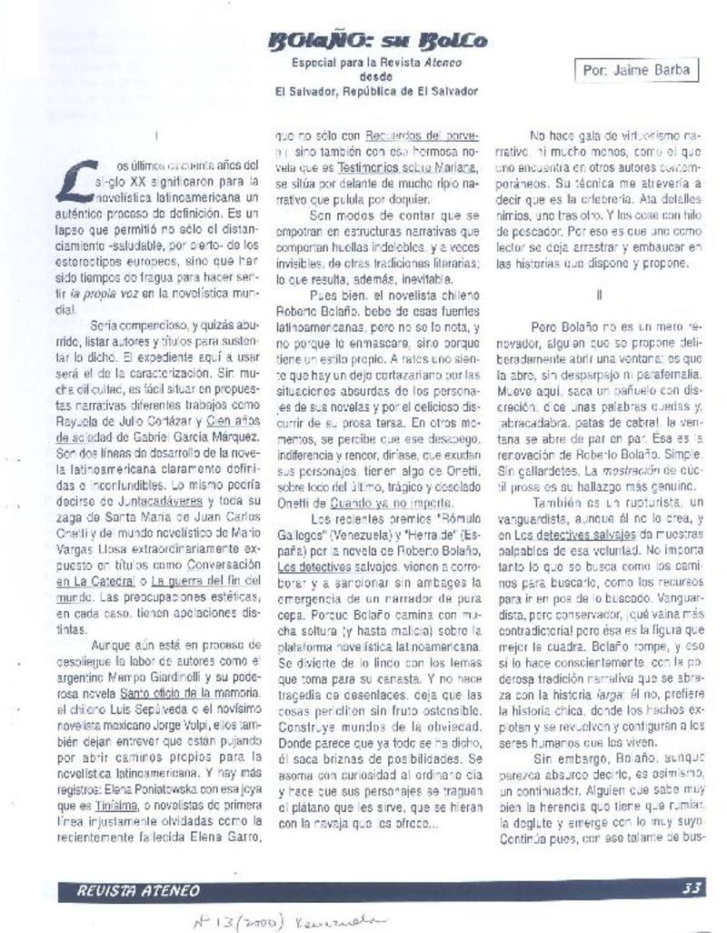 Bolaño, su bollo [artículo] Jaime Barba.