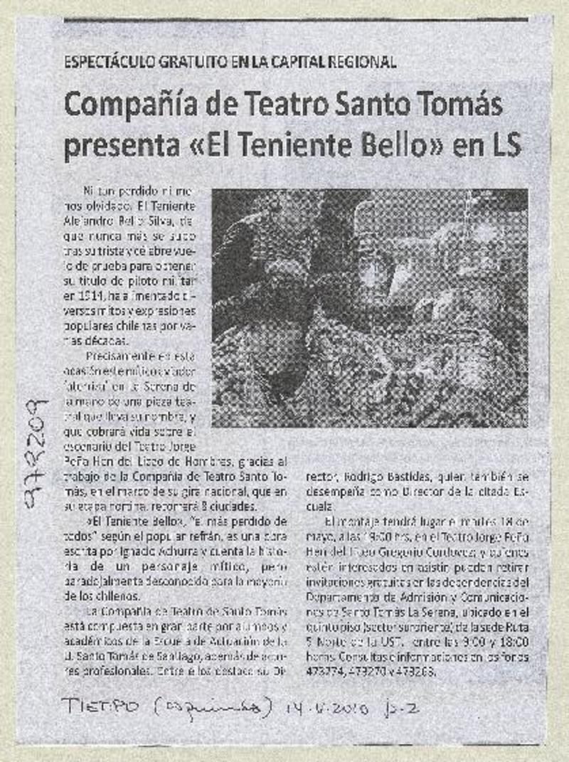 Compañía de Teatro Santo Tomás presenta "El Teniente Bello" en LS [artículo]