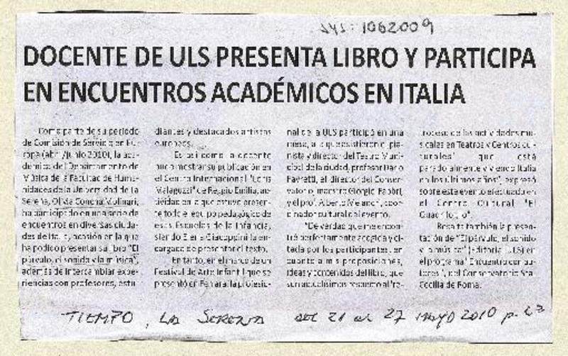 Docente de ULS presenta libro y participa en encuetros académicos en Italia [artículo]