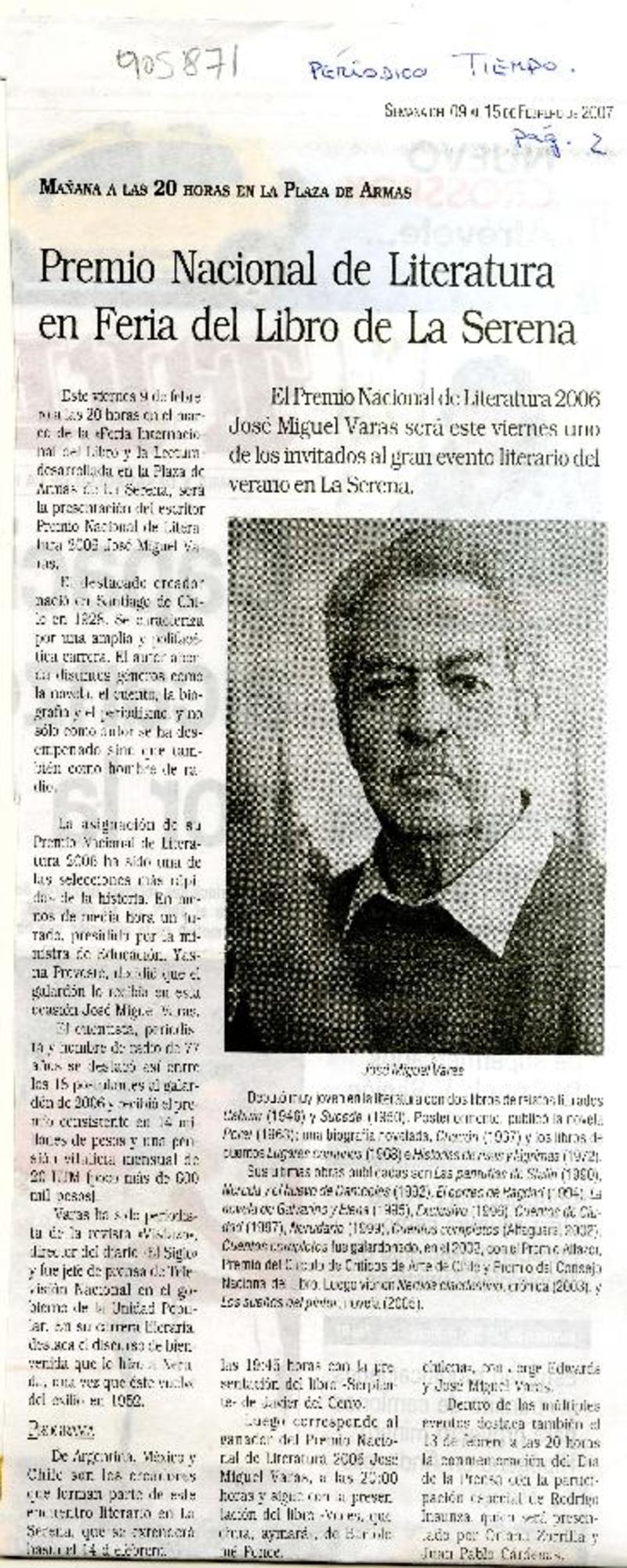 Premio Nacional de Literatura en Feria del Libro de La Serena [artículo]
