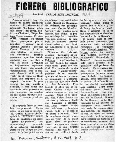 Fichero bibliográfico [artículo] Carlos René Ibacache.