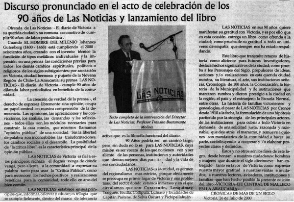 Discurso pronunciado en el acto de celebración de los 90 años de Las Noticias y lanzamiento del libro. [artículo]