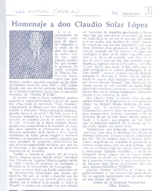 Homenaje a don Claudio Solar López [artículo].
