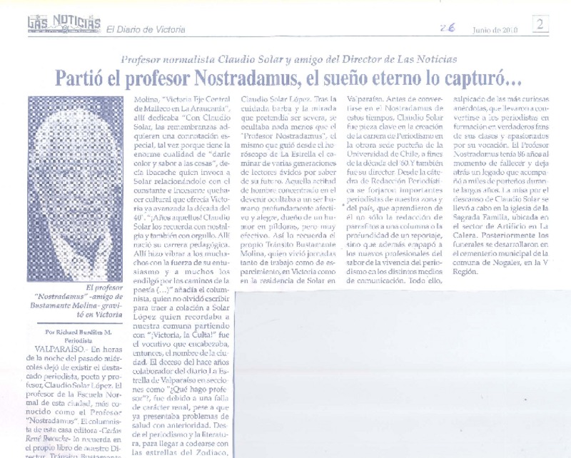 Partió el profesor Nostradmus, el sueño eterno lo caprturó-- [artículo] Richard Burdiles M.