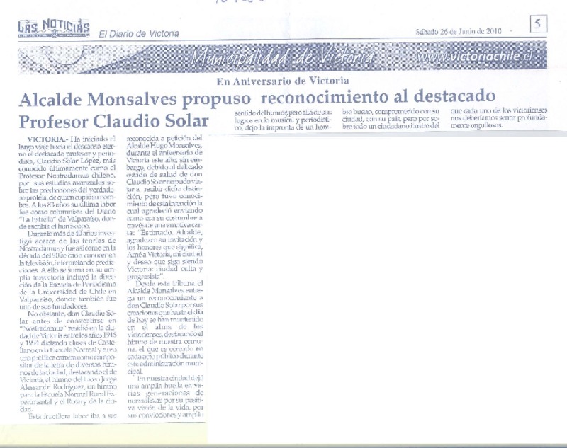 Alcalde Monsalves propuso reconocimiento al destacado profesor Claudio Solar [artículo].