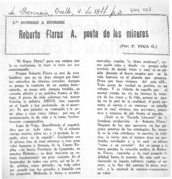 Roberto Flores A. poeta de los mineros [artículo] P. Vega C.