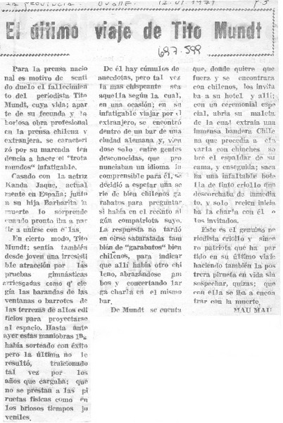 El último viaje de Tito Mundt [artículo] Mau Mau.