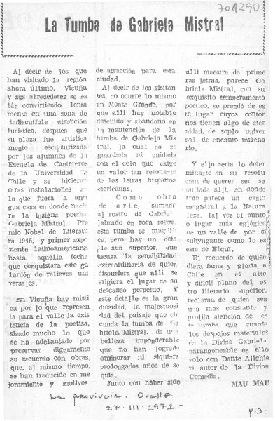 La tumba de Gabriela Mistral [artículo] Mau Mau.