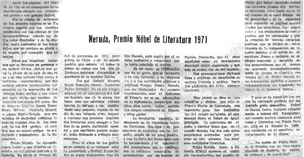 Neruda, Premio Nobel de Literatura 1971 [artículo]
