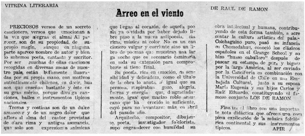 Autores chilenos - Arreo en el viento - Ramón, Raúl de - Canciones folklóricas chilenas