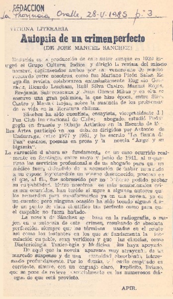 Autores chilenos - Sanchez, José Manuel - Autopista de un crimen perfecto