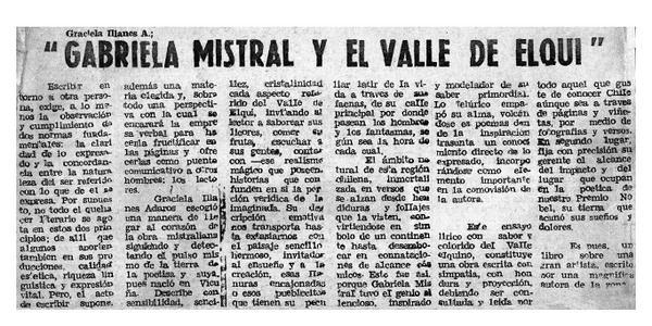 Gabriela Mistral y el Valle de Elqui" [artículo] J. A. Massone.