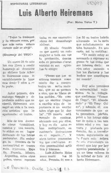 Luis Alberto Heiremans [artículo] Mateo Yuras Y.