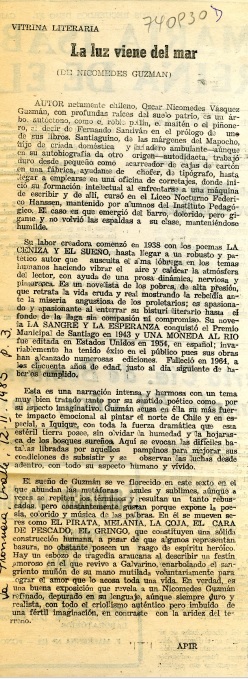Autores chilenos - Guzmán, Nicomedes - Luz viene del mar