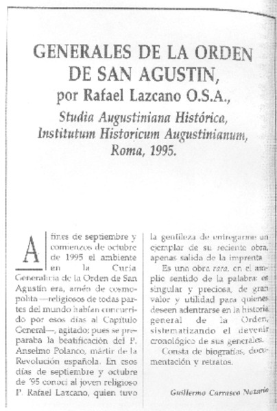 Generales de la orden de San Agustín [artículo] Guillermo Carrasco Notario.