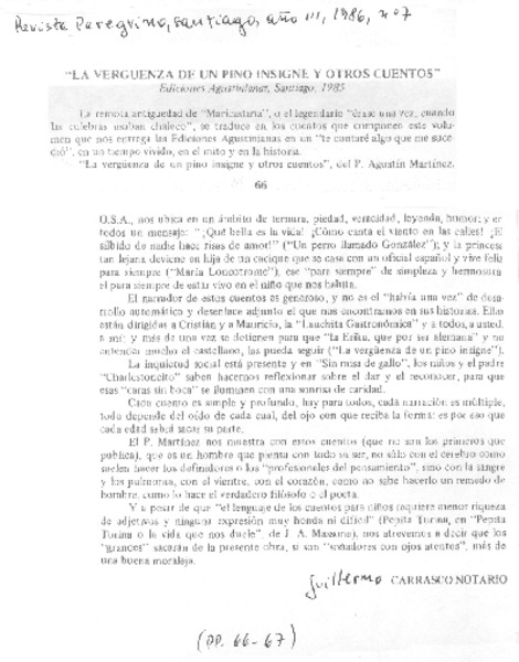 La vergüenza de un pino insigne y otros cuentos [artículo] Guillemo Carrasco Notario.