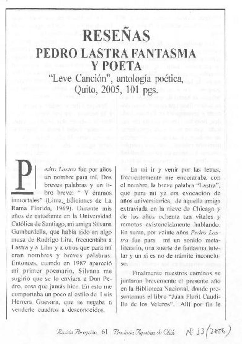 Pedro Lastra fantasma y poeta [artículo] Guillermo Carrasco Notario.