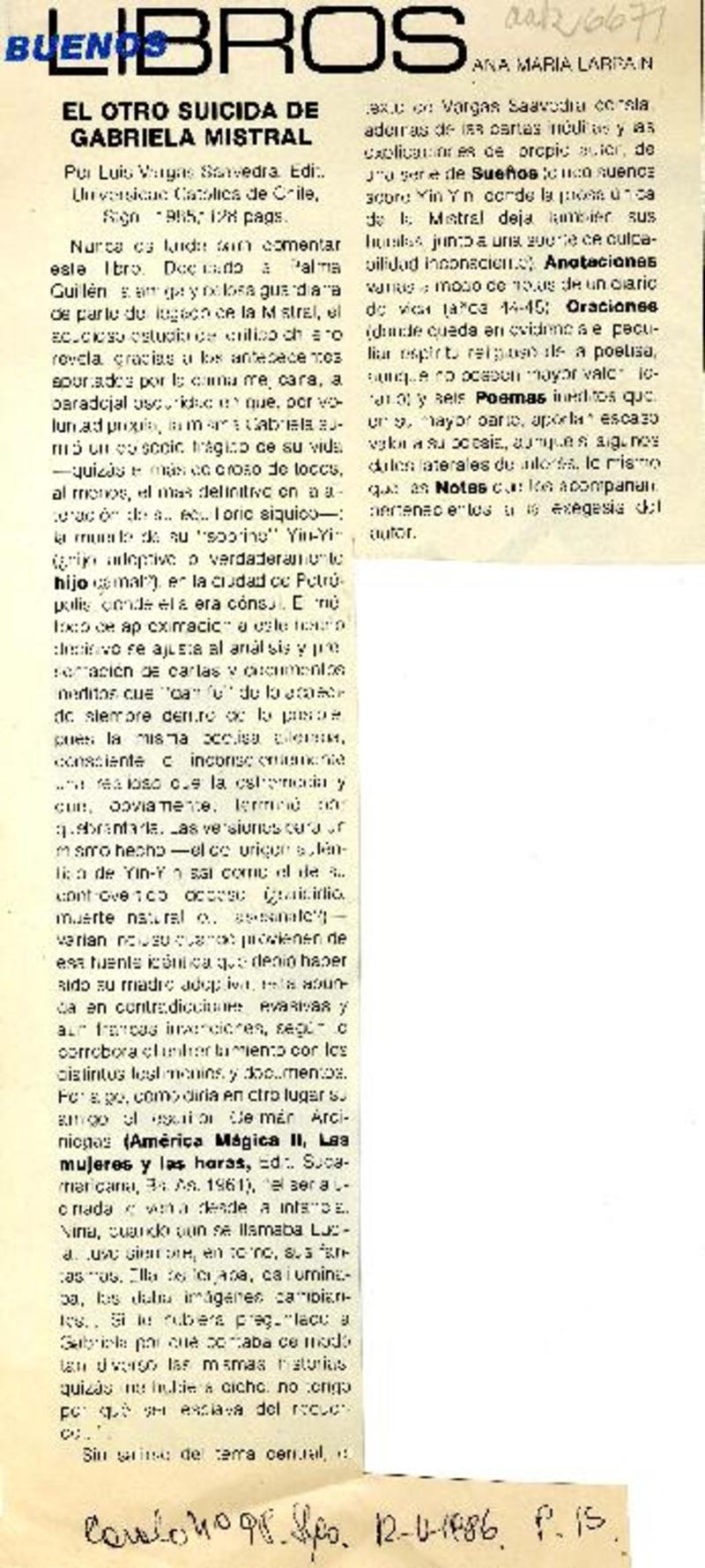 El otro suicida de Gabriela Mistral [artículo] Ana María Larraín