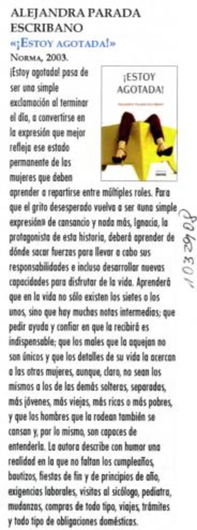 Autoras chilenas - Parada Escribano, Alejandra - ¡Estoy agotada!