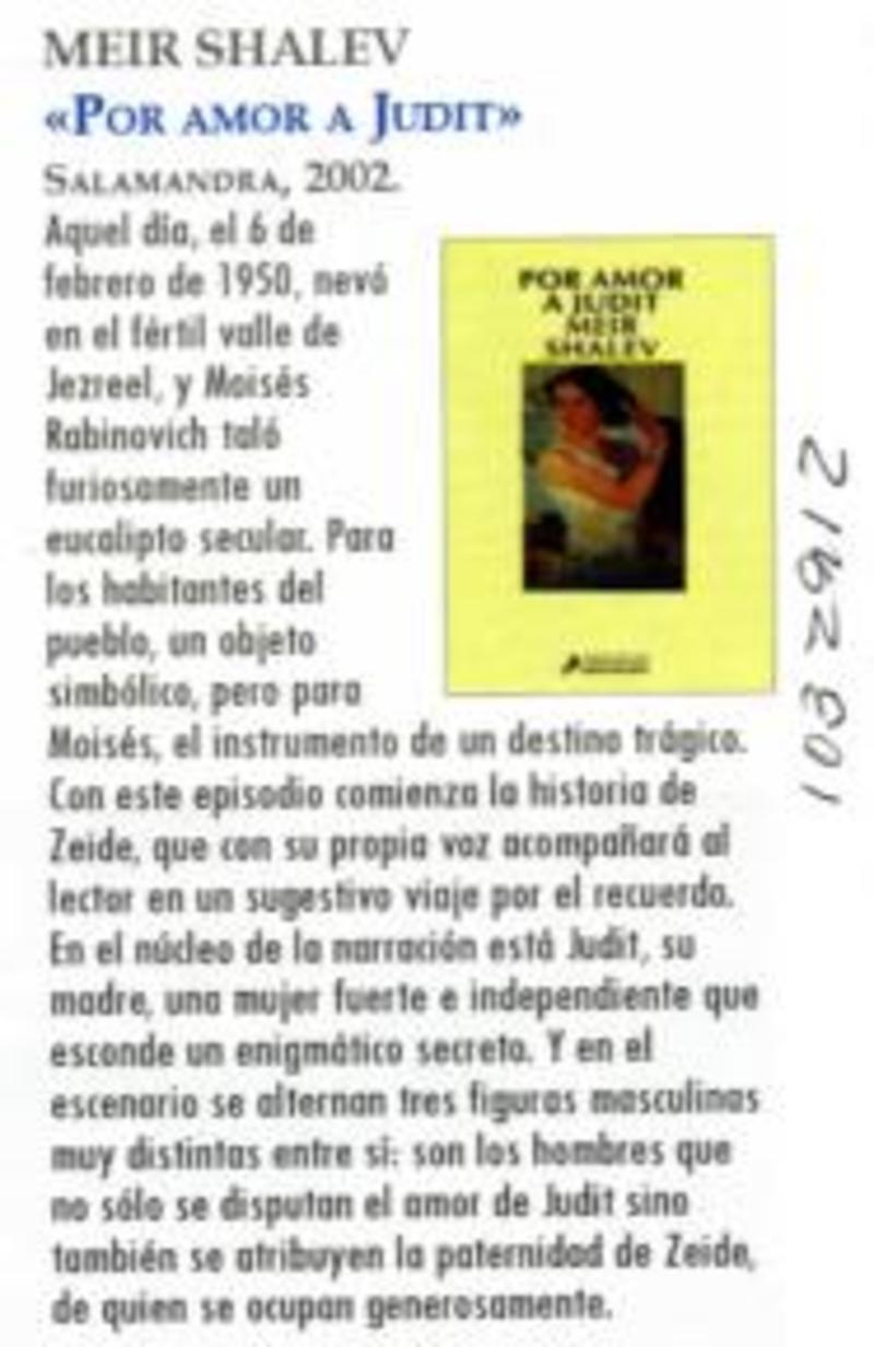 Shalev, Meir - Por amor a Judit - Autores israelí