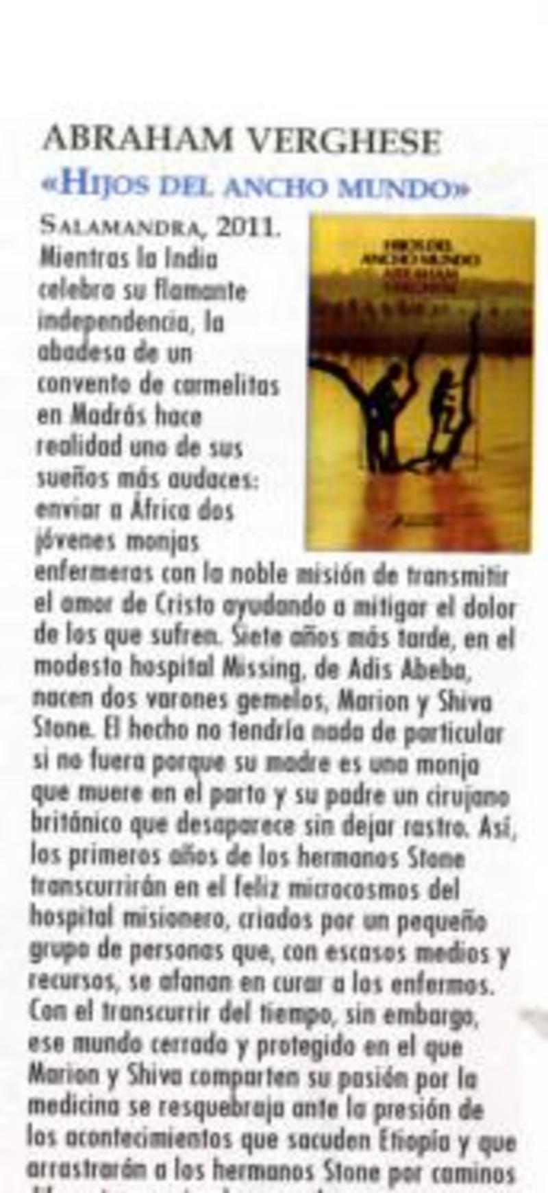 Verghese, Abraham - Hijos del ancho mundo - Autores etíopes