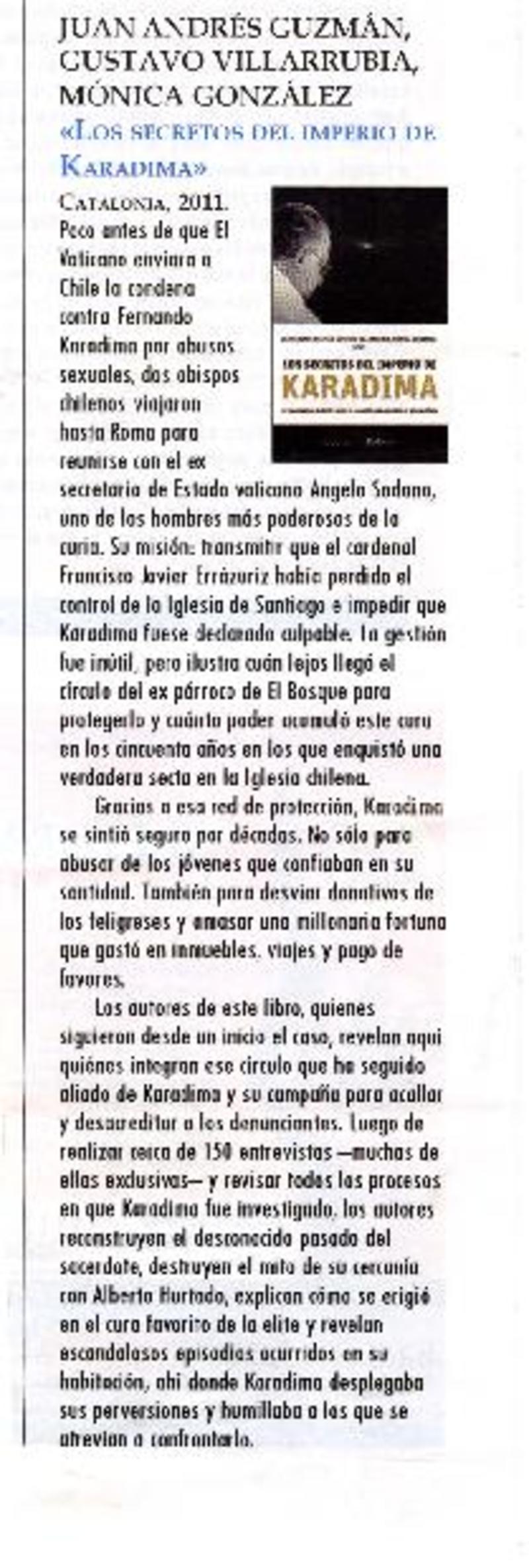 Autores chilenos - González, Mónica - Guzmán, Juan Antonio - Los secretos del imperio de Karadima - Villarrubia, Gustavo