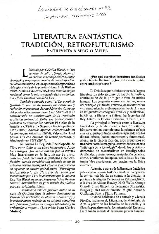 Literatura fantástica tradición, retrofuturismo [entrevista] [artículo] J.C.M.