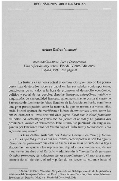 Juez y Democracia. Una reflexión muy actual [artículo] Arturo Felipe Onfray Vivanco.