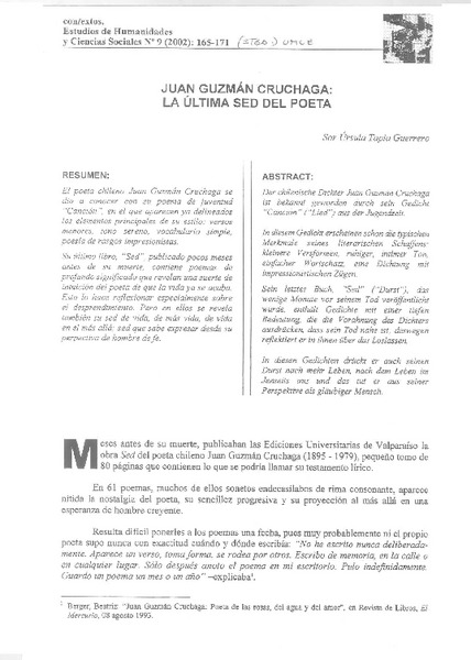 Juan Guzmán Cruchaga, la última Sed del poeta [artículo] Ursula Tapia Guerrero.