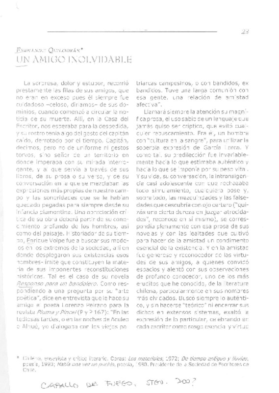 Un amigo inolvidable [artículo] Fernando Quilodrán.