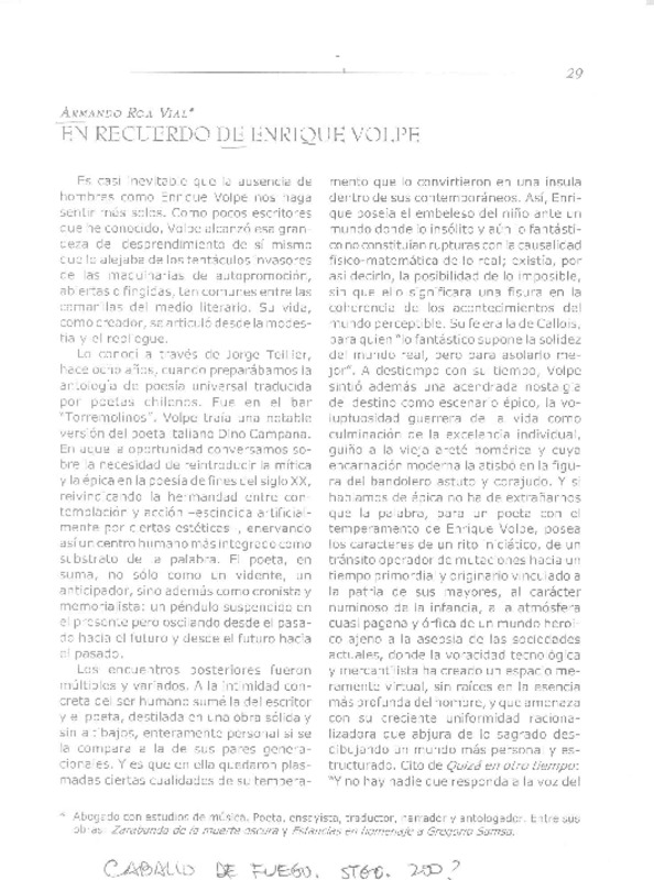 En recuerdo de Enrique Volpe [artículo] Armando Roa Vidal.
