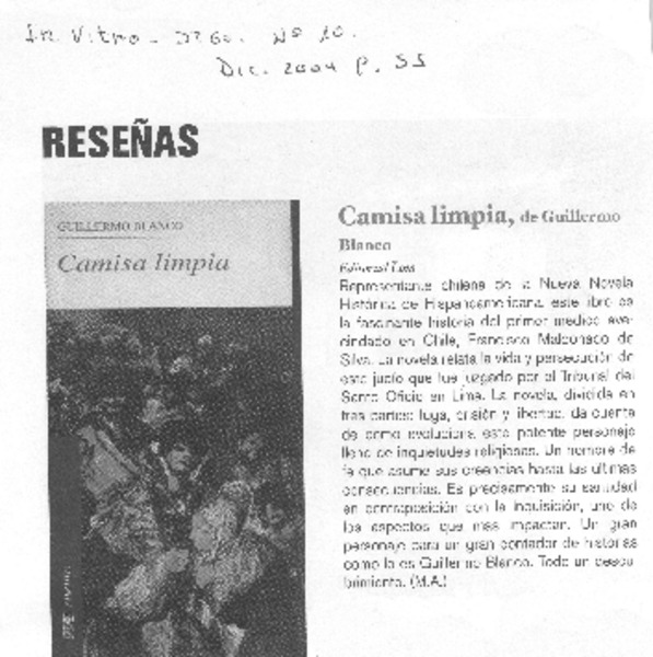 Camisa limpia de Guillermo Blanco [artículo] M.A.