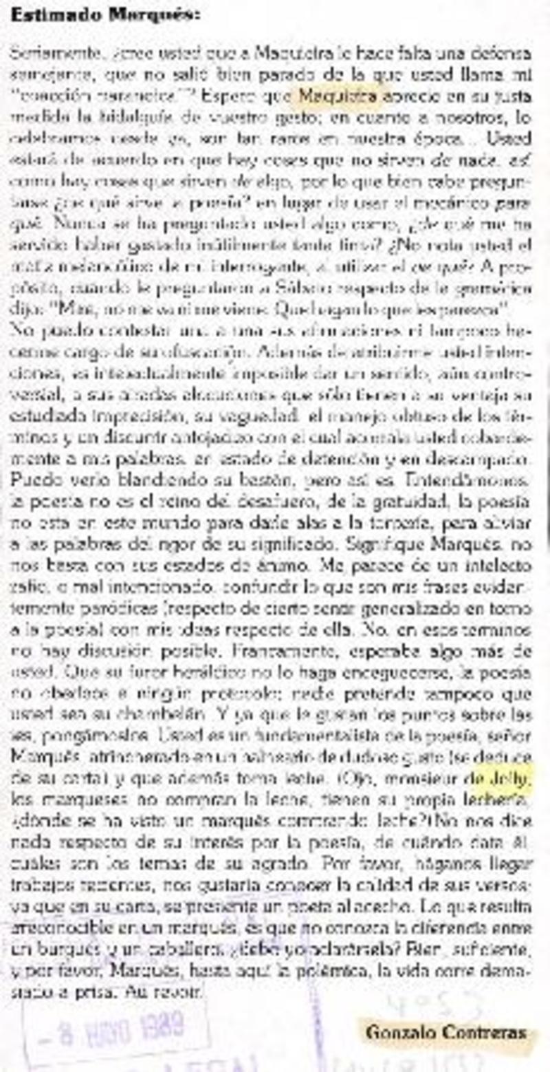Estimado Marqués [artículo] Gonzalo Contreras.