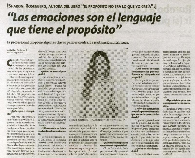 "Las emociones son el lenguaje que tiene el propósito" [entrevista] [artículo] : Natividad Espinoza R.