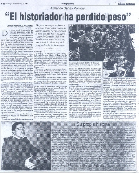 "El historiador ha perdido peso" (entrevistas) [artículo] Jorge Abasolo Aravena