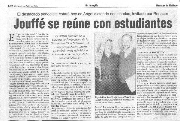 Jouffé se reúne con estudiantes [artículo]