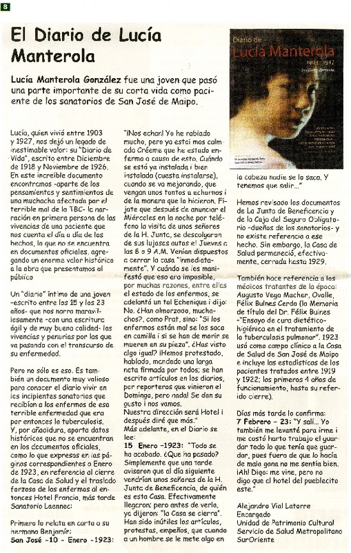 El diario de Lucía Manterola [artículo] Alejandro Vila Latorre.