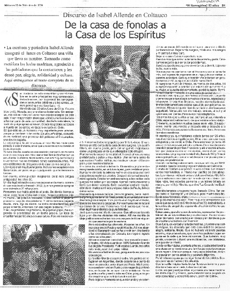 De la casa de fonolas a la casa de los espíritus [artículo] Isabel Allende.