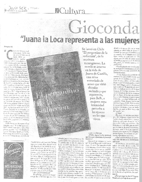 Gioconda Belli "Juana la Loca representa a las mujeres que quieren más". (entrevistas) [artículo]