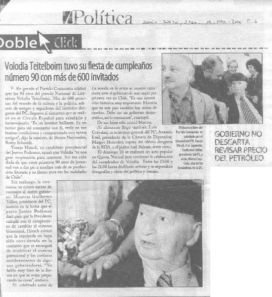 Volodia Teitelboim tuvo su fiesta de cumpleaños número 90 con más de 600 invitados [artículo]