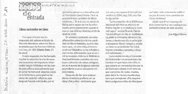 Libros sustraídos en Lima [artículo]José Miguel Barros.