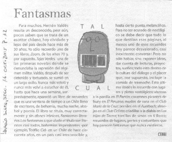 Autores chilenos - Valdés, Hernán - Fantasmas literarios