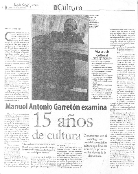 Manuel Antonio Garretón examina 15 años de cultura (entrevistas) [artículo]Cristián Labarca Bravo.